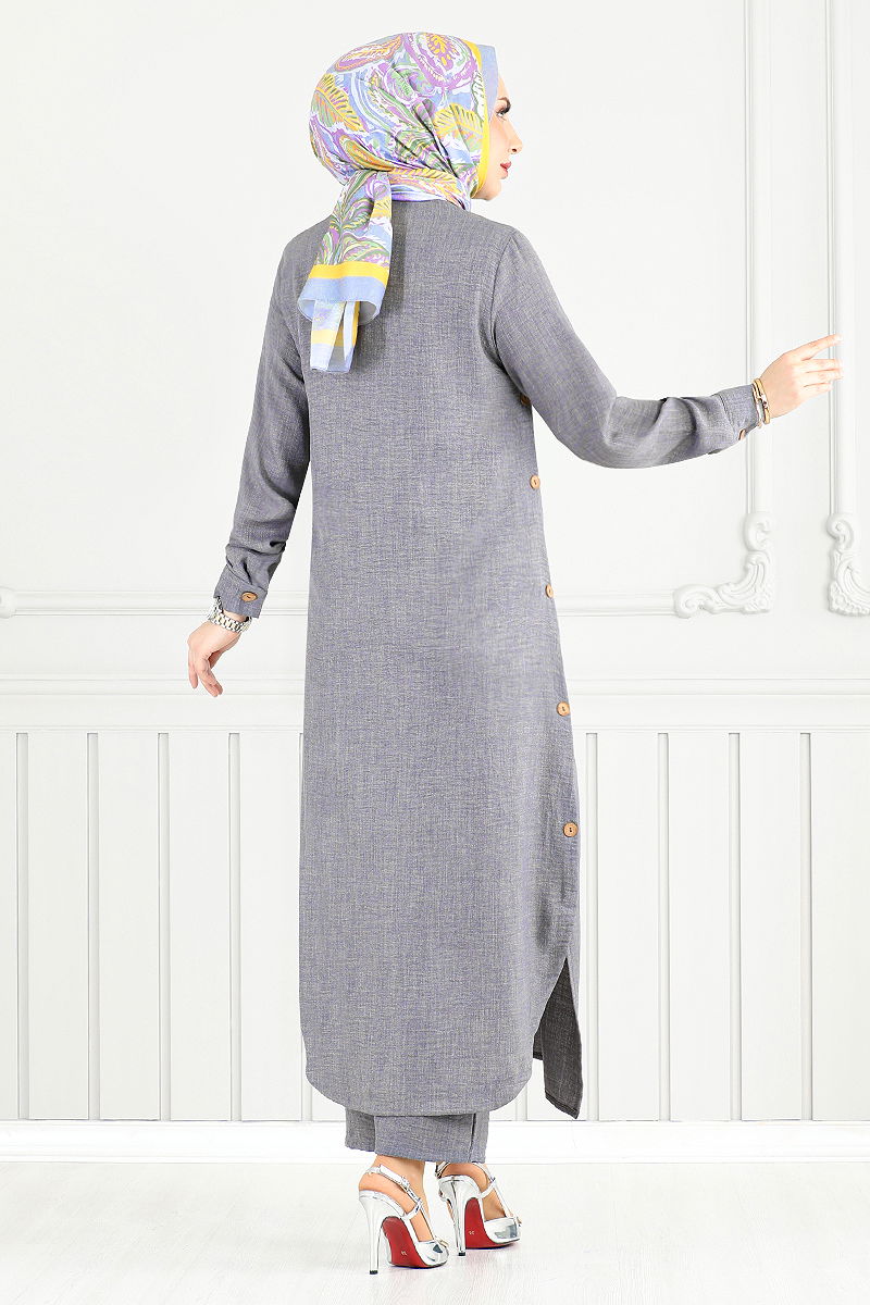 المنتج لديه ياقة القميص. المنتج به أزرار من الأمام. الازرار الموجود بالفتحات اكسسوار. غير مبطنة. خصر البنطال مرن. أزرار الكفة نشطة. قد يكون هناك اختلاف في الدرجة اللونية في المنتج بسبب التقاط الصور الفوتوغرافية.