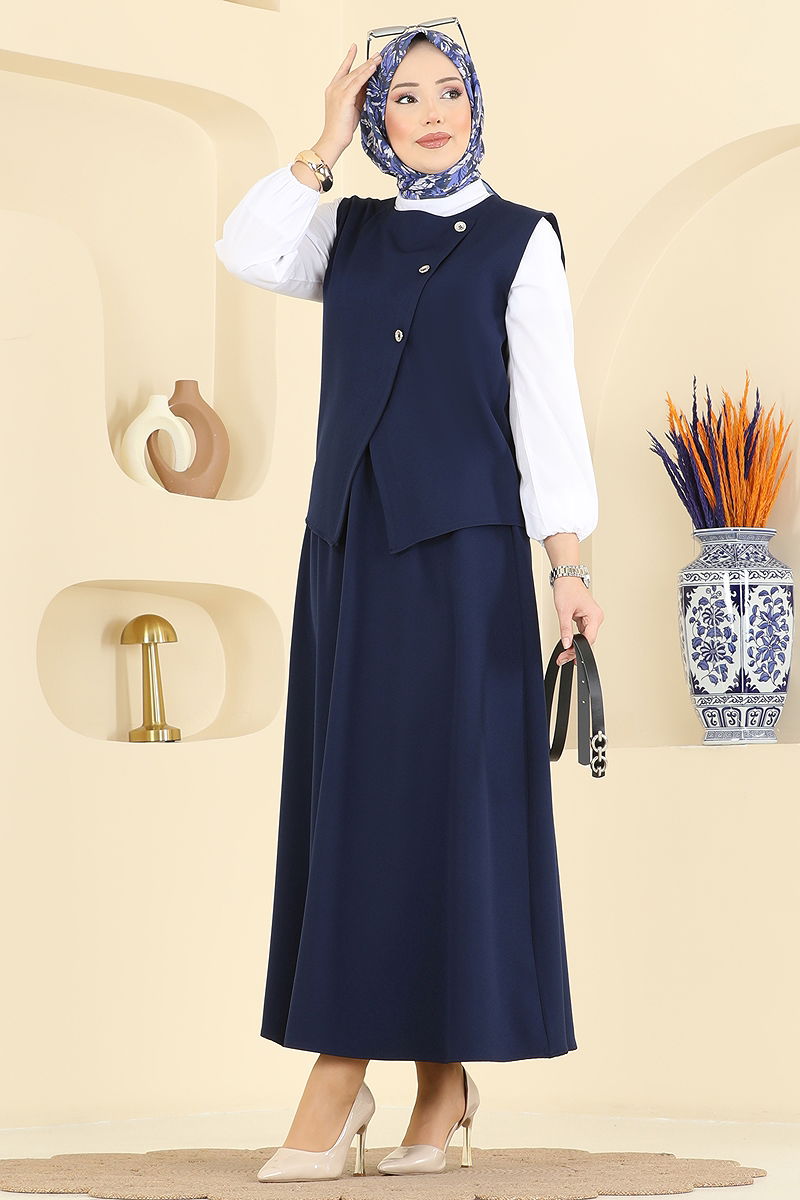 Product Feature : It is a new season hijab fashion product. The product has a Jacket collar. The product has From the front buttons. Unlined. Belt included, optional not available. Blouse is not included. Sample combination is made with the blouse to show the intended use of the product. The skirt waist is elastic. There may be a tonal difference in the product due to concept photo shoots.