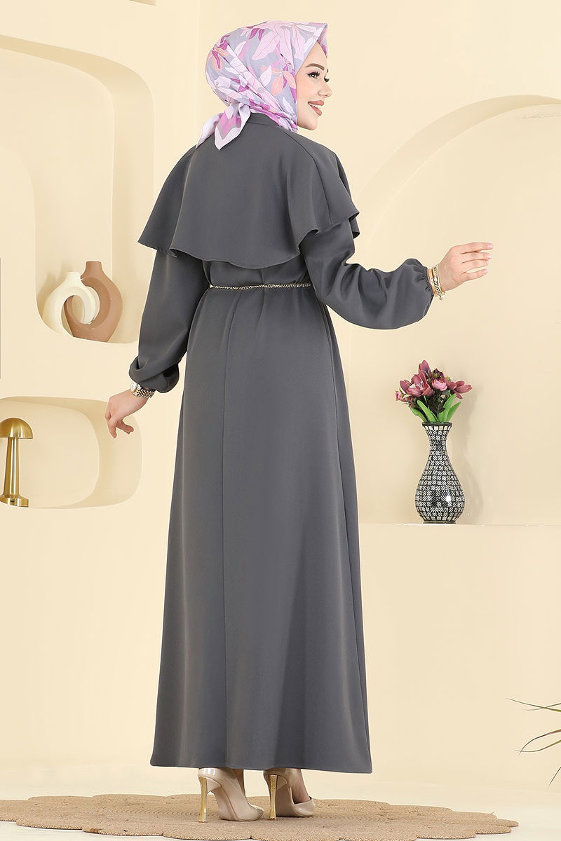 Pelerin Detailed Dabil Dress offers a combination of elegance and comfort, making it a special modest outfit that you can enjoy throughout all seasons. With its eye-catching cape detail, this dress provides you the flexibility to create different styles by detaching the cape as desired. Easily maintainable with gentle wash at 30 degrees, it features a crew neck and without lining for comfortable wear. The zipper at the back makes it easy to put on. Suitable for both everyday wear and special occasions, this dress will become an essential item in your wardrobe.