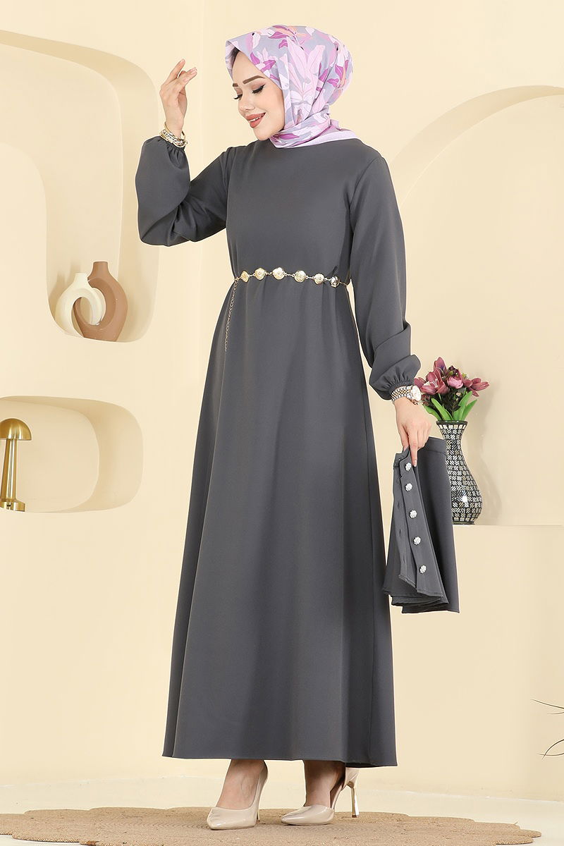 المنتج لديه ياقة دائرية. غير مبطنة. المنتج به سحاب في جزء من الخلف. المنتج يحتوي على حزام خصر مُخاط. العباءة متضمنة، اختيارية لا يجب استخدامها. الحزام متضمن، ،يمكن استخدامها حسب الرغبة السوار مطاطي. قد يكون هناك اختلاف في الدرجة اللونية في المنتج بسبب التقاط الصور الفوتوغرافية.