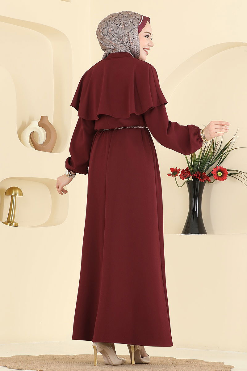 المنتج لديه ياقة دائرية. غير مبطنة. المنتج به سحاب في جزء من الخلف. المنتج يحتوي على حزام خصر مُخاط. العباءة متضمنة، اختيارية لا يجب استخدامها. الحزام متضمن، ،يمكن استخدامها حسب الرغبة السوار مطاطي. قد يكون هناك اختلاف في الدرجة اللونية في المنتج بسبب التقاط الصور الفوتوغرافية.