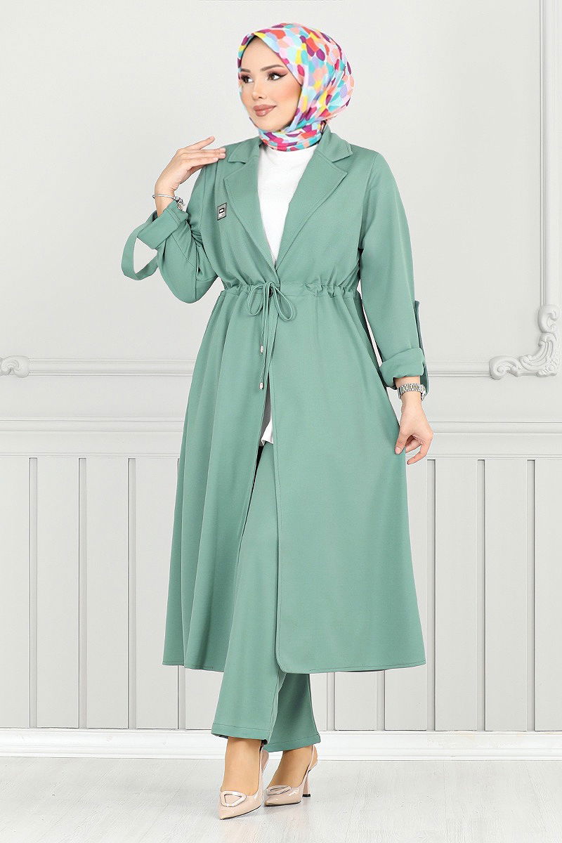 Product Feature : It is a new season hijab fashion product. There is a button available from the front. The product has a Double-breasted collar. Unlined. The product is lace-up. The coat of arms detail is sewn. There is a pocket on the tunic. The waist of the trousers is elastic. Cuff buttons are active. There may be a tonal difference in the product due to concept photo shoots.