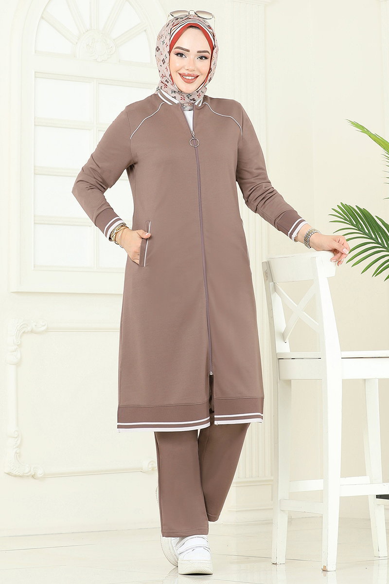 المنتج لديه ياقة دائرية. غير مبطنة. المنتج به سحاب في جزء من الأمام. الجيب متاح. خصر البنطال مرن. قد يكون هناك اختلاف في الدرجة اللونية في المنتج بسبب التقاط الصور الفوتوغرافية.