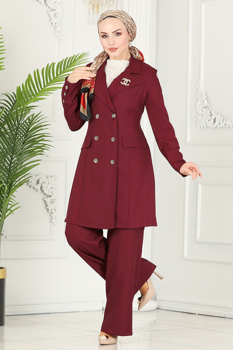 Product Feature:It is a new season hijab fashion product. (It is unlined.) Jacket collar. There are buttons that can be used from the front. The trouser waist is elastic. Pocket detail is an accessory. Accessories are not included in the product. There may be a tonal difference in the product color due to concept shots.