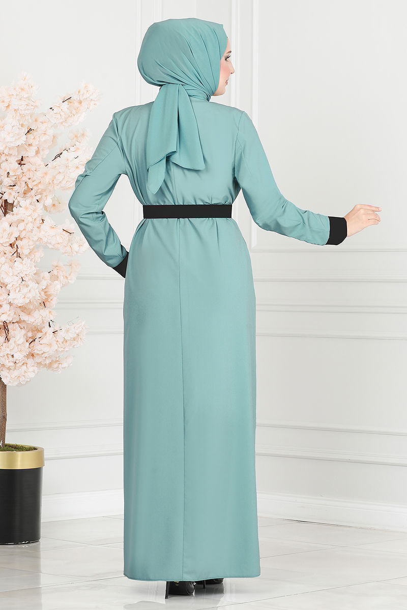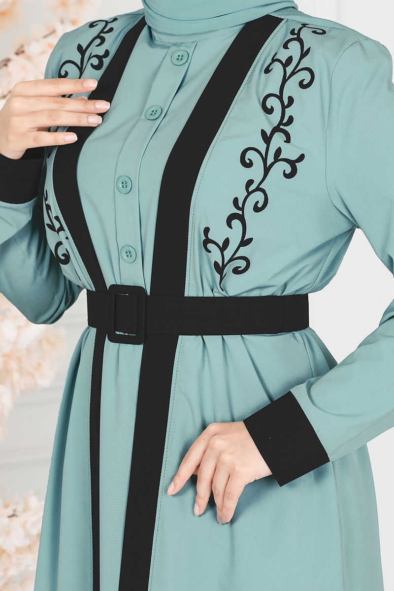 Product Feature : It is a new season hijab fashion product. The inner garment is worn over the head. The product has a Cycling collar. The product has from the back buttons. Unlined. Buttons are accessories. Details are printed. The inner dress is sleeveless. Accessories are not included. Belt included, optional not available. There may be a tonal difference in the product due to concept photo shoots.