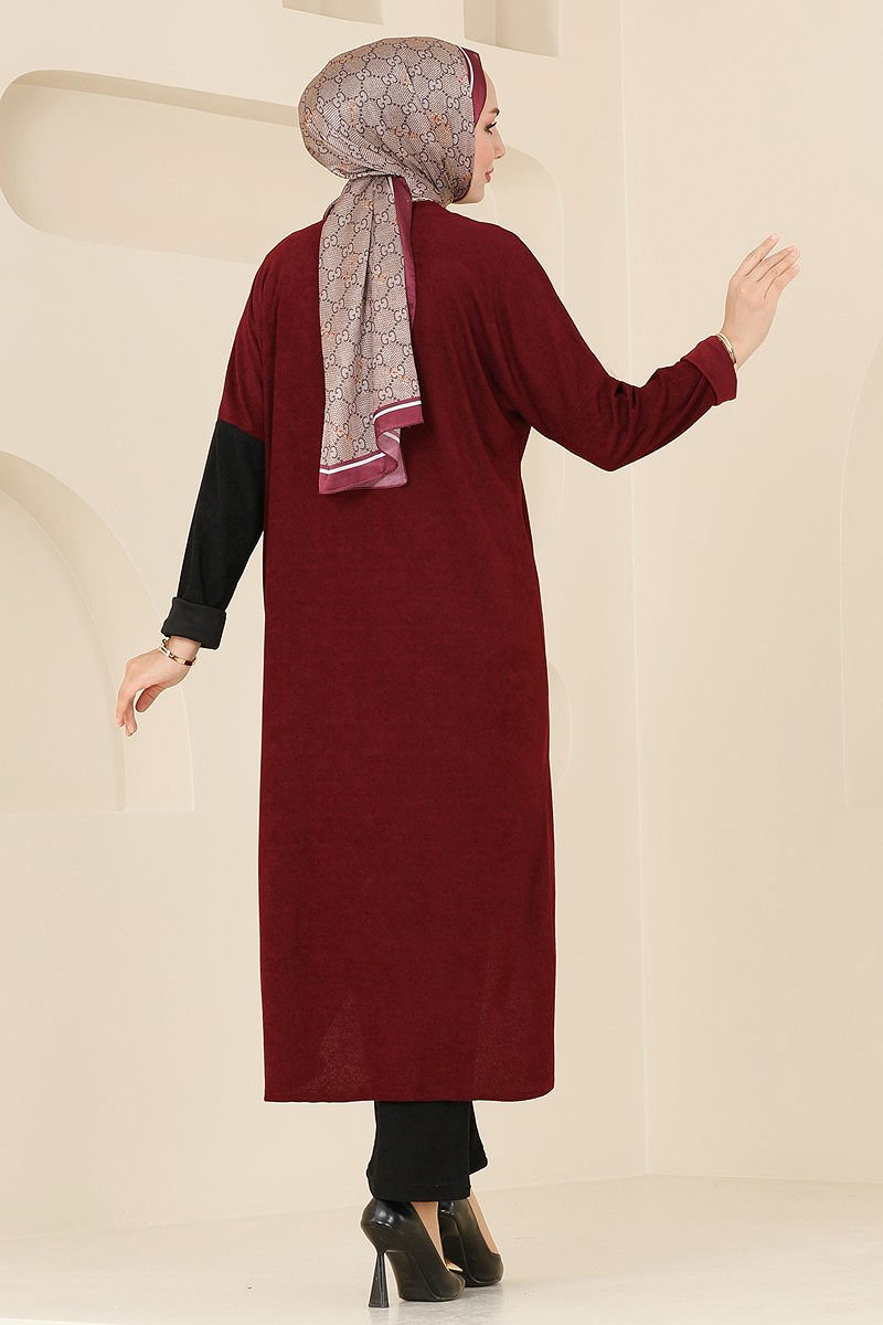 Asymmetric Cut Two-Piece Suit KOMBİN model hijab product. Can be used in Autumn and Winter season. Should be washed at 30 degrees without squeezing. Made of first-class towel fabric. The product has a Bicycle collar. Unlined. (The product on the model is size 38.) The inner dress is worn from the head. The waist of the pants is elastic. Tunic and TROUSERS