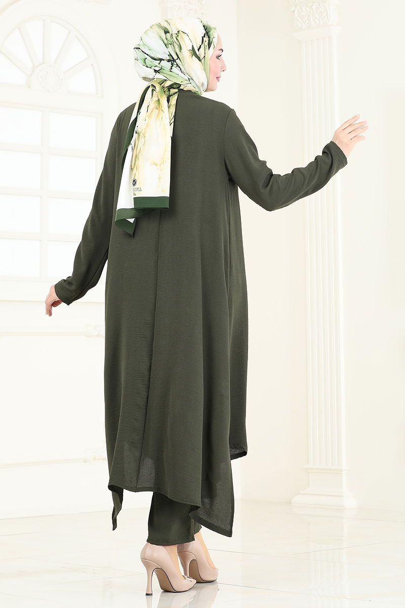Product Feature : It is a new season hijab fashion product. It has a button that can be used from the back. The product has a Cycling collar. The tunic has a side slash.. Unlined. Necklace is included in the product, may not be used upon request. The waist of the trousers is elastic. There may be a tonal difference in the product due to concept photo shoots.