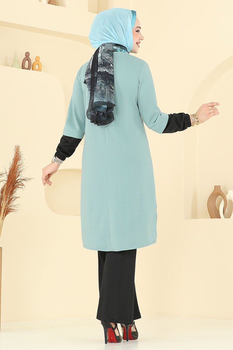 Product Feature : It is a new season hijab fashion product. The product has a Cycling collar. Unlined. The product has a zipper at the from the back part. Metal anti-tarnish accessory. Details are sewn. The waist of the trousers is elastic. The cuff is rubberized. There may be a tonal difference in the product due to concept photo shoots.