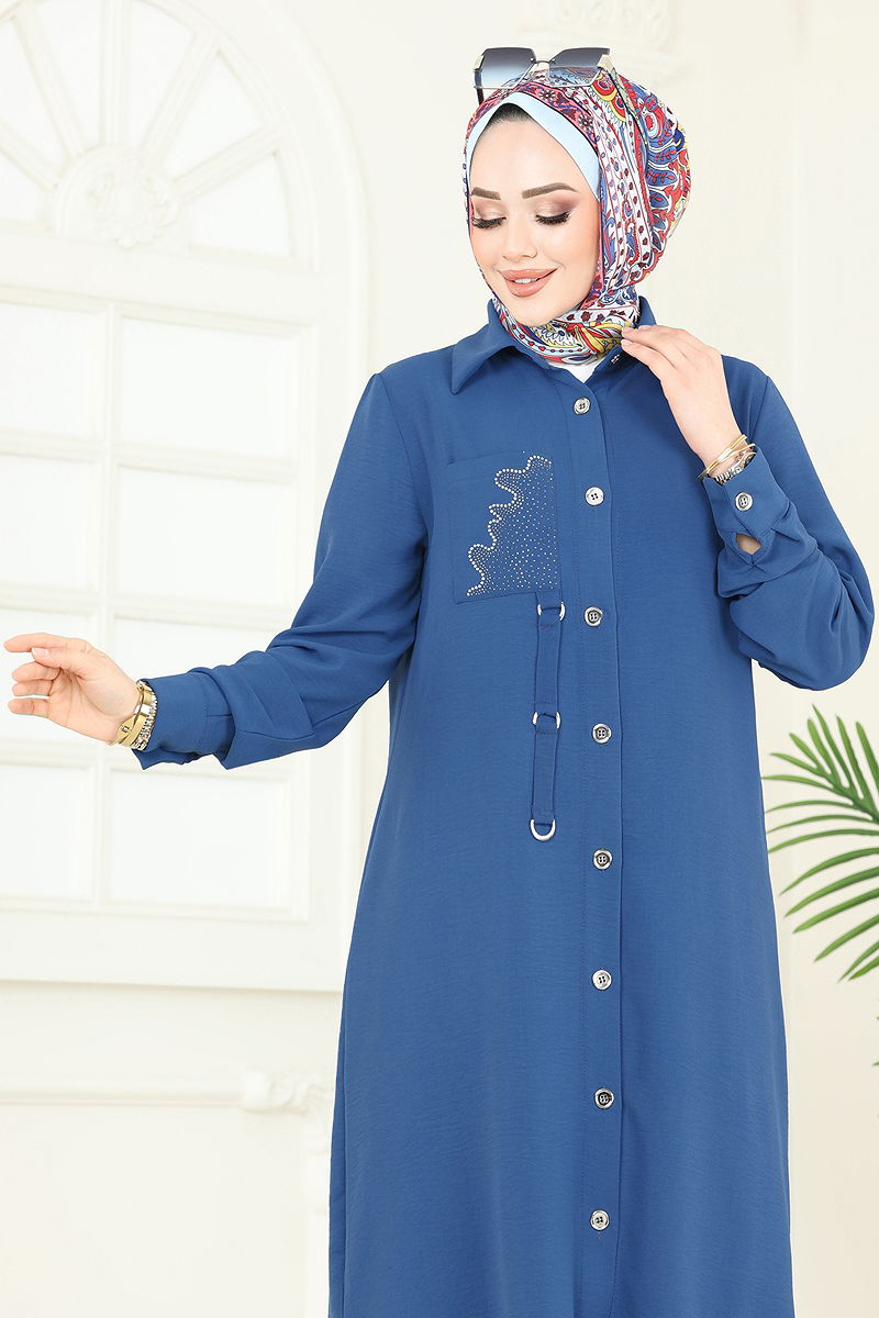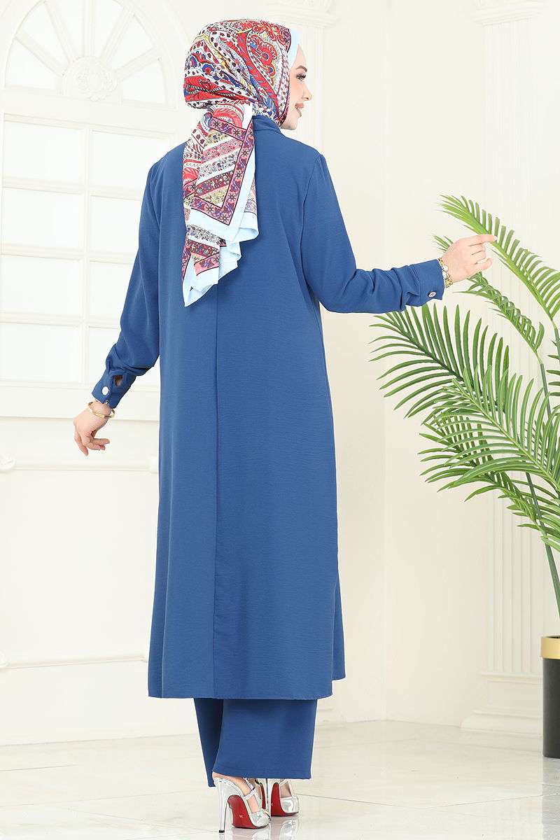 Product Feature : It is a new season hijab fashion product. The product has a Shirt collar. The product has From the front buttons. The tunic has a side slash.. Unlined. The stones are glued. Details are sewn. The chest pocket is active. The waist of the trousers is elastic. Cuff buttons are active. There may be a tonal difference in the product due to concept photo shoots.