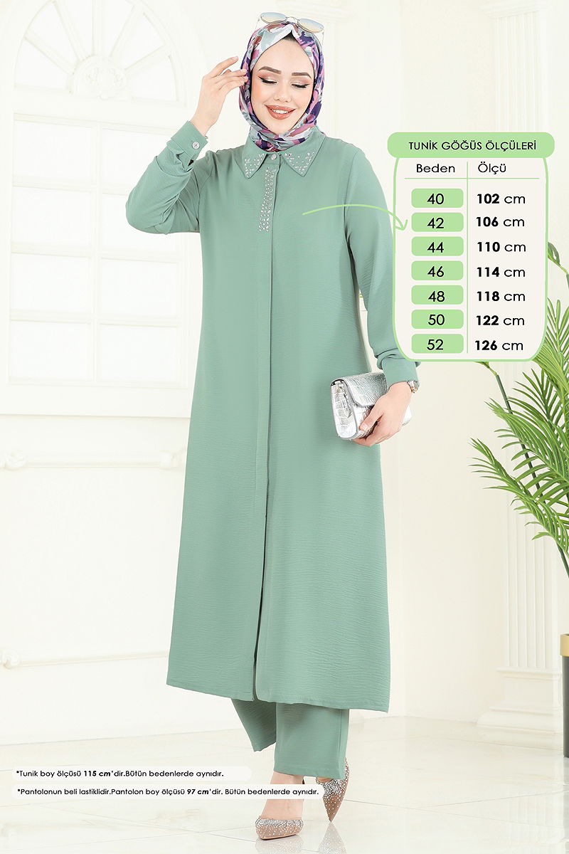 المنتج لديه ياقة القميص. المنتج به أزرار جيزلي. غير مبطنة. يتم لصق الحجارة. البلوزة غير متضمنة. صُنعت عينة من المجموعة مع البلوزة لإظهار الاستخدام المقصود للمنتج. خصر البنطال مرن. أزرار الكفة نشطة. قد يكون هناك اختلاف في الدرجة اللونية في المنتج بسبب التقاط الصور الفوتوغرافية.