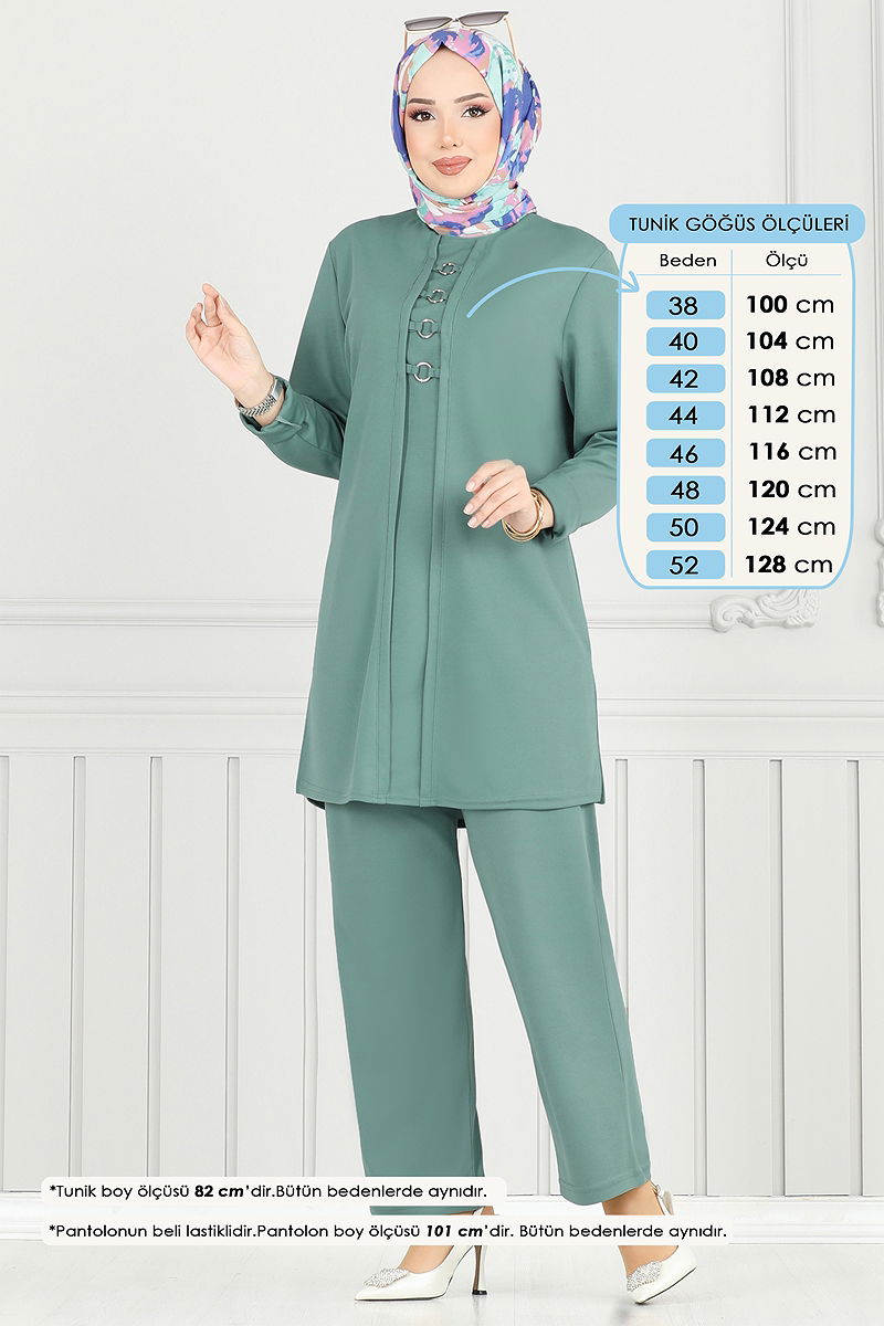 يتم ارتداء المنتج على الرأس. المنتج لديه ياقة دائرية. غير مبطنة. اكسسوار معدني لا يتغير للأغمق التفاصيل مخيطة. خصر البنطال مرن. قد يكون هناك اختلاف في الدرجة اللونية في المنتج بسبب التقاط الصور الفوتوغرافية.
