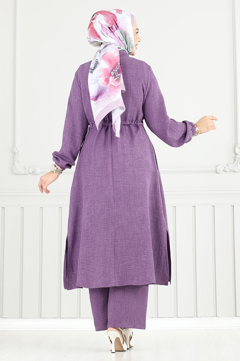 Product Feature : It is a new season hijab fashion product. It has a laced waist. The product has a Half Judge collar. The product has From the front buttons. The tunic has a side slash.. Unlined. The waist of the trousers is elastic. The cuff is rubberized. There may be a tonal difference in the product due to concept photo shoots.