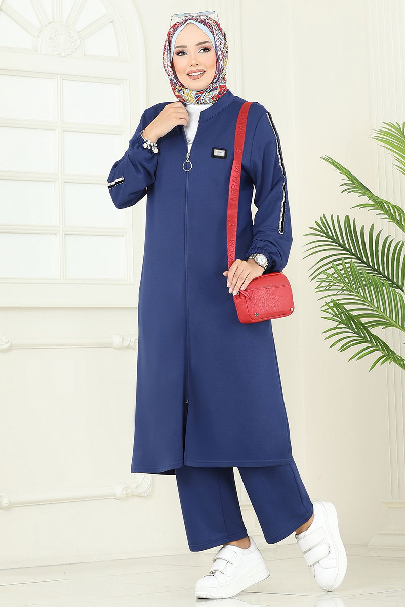 Product Feature : It is a new season hijab fashion product. The product has a Cycling collar. Unlined. The product has a zipper at the From the front part. The writings are in print. The coat of arms detail is glued. Pocket available. The waist of the trousers is elastic. The cuff is rubberized. There may be a tonal difference in the product due to concept photo shoots.