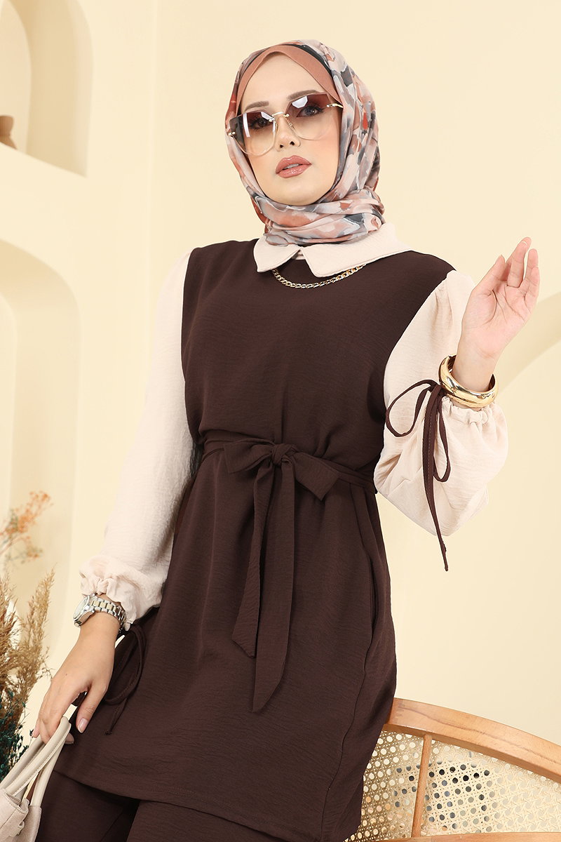 The Drawstring Cuff Aerobin Suit is a versatile Islamic clothing suitable for all seasons. This set, which can be washed gently at 30 degrees, is made from breathable aerobin fabric. The tunic features a shirt collar detail, is unlined, and provides a back zipper. The cuffs with drawstrings add an elegant touch, while the belt can be used optionally. The trousers have an elastic waist for comfort. Every detail makes this combination perfect.
