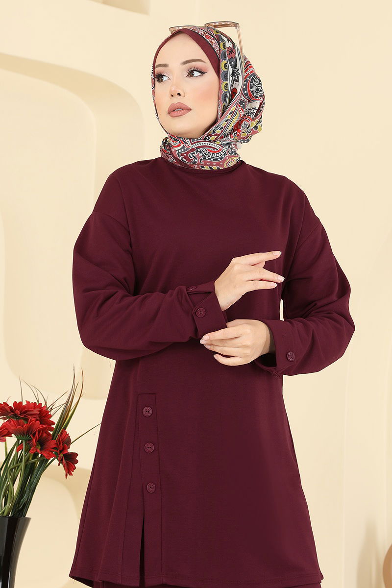 يوجد زر يمكن استخدامه من الخلف. المنتج لديه ياقة دائرية. البلوز تحتوي على فتحة. غير مبطنة. خصر البنطال مرن. أزرار الأكمام إكسسوارات. قد يكون هناك اختلاف في الدرجة اللونية في المنتج بسبب التقاط الصور الفوتوغرافية.