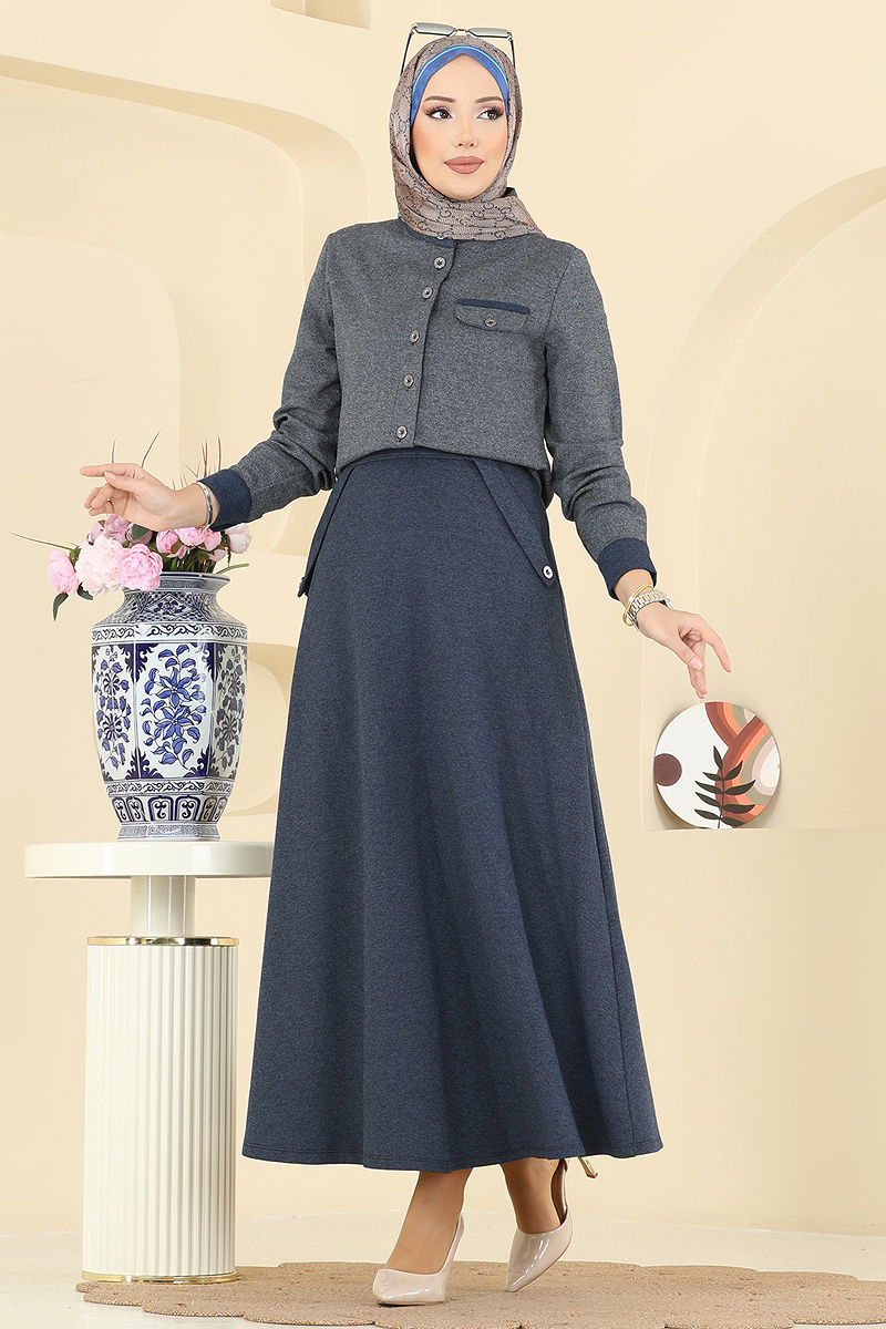 طقم كحلي ورمادي غامق