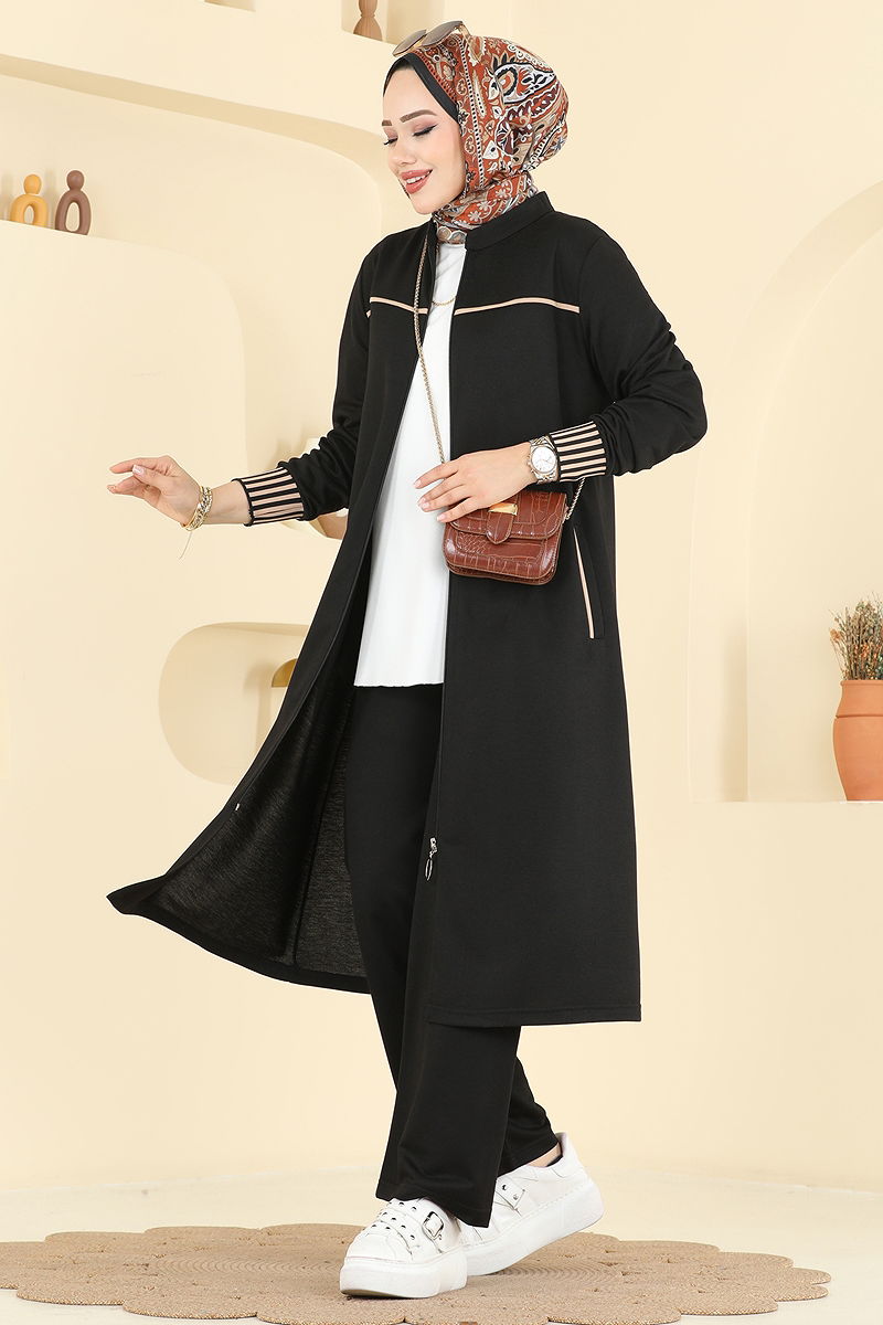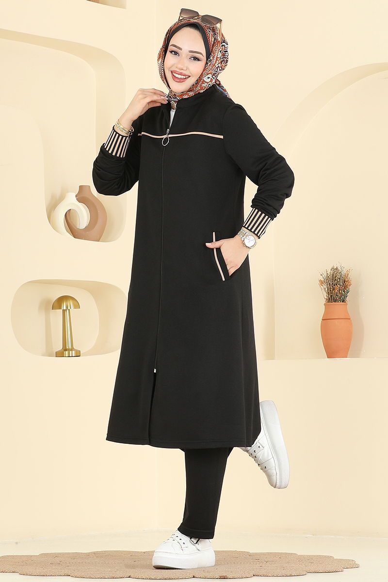 المنتج لديه ياقة نصف بيضوية. غير مبطنة. المنتج به سحاب في جزء من الأمام. الجيب متاح. خصر البنطال مرن. قد يكون هناك اختلاف في الدرجة اللونية في المنتج بسبب التقاط الصور الفوتوغرافية.
