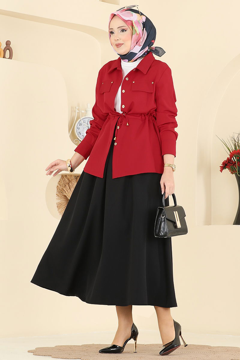 يتميز بخصر ذو أربطة. المنتج لديه ياقة القميص. المنتج به أزرار من الأمام. غير مبطنة. تفاصيل الجيب من الملحقات. .خصر التنورة مرن أزرار الكفة نشطة. قد يكون هناك اختلاف في الدرجة اللونية في المنتج بسبب التقاط الصور الفوتوغرافية.