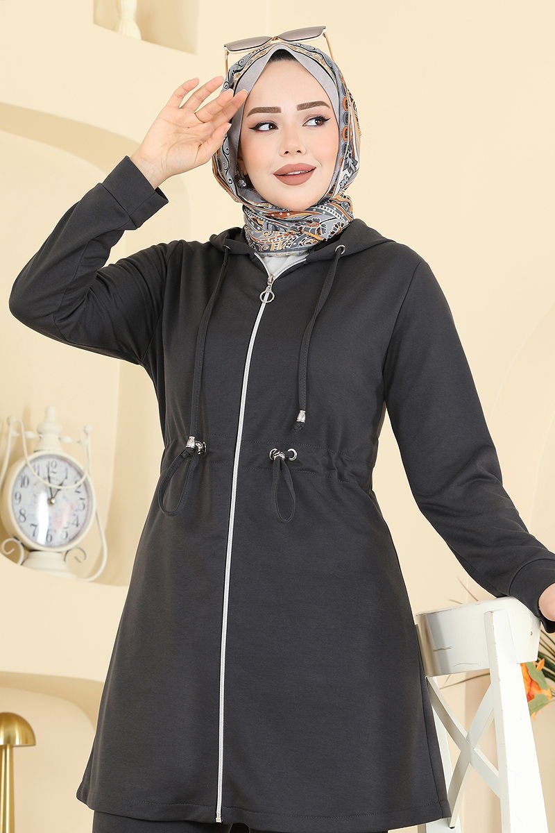 This stylish and practical Drawstring Waist Sport Suit COMBO is a comfortable all-season hijab outfit. Washable at 30 degrees with delicate care, this combo is made from high-quality double-thread fabric. With a hooded neckline and front zipper design, it offers a modern look while focusing on comfort with its drawstring waist tunic and elastic waist pants. Suitable for a size 38, it ensures your style is maintained throughout the seasons.