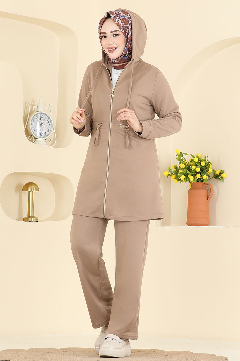 This stylish and practical Drawstring Waist Sport Suit COMBO is a comfortable all-season hijab outfit. Washable at 30 degrees with delicate care, this combo is made from high-quality double-thread fabric. With a hooded neckline and front zipper design, it offers a modern look while focusing on comfort with its drawstring waist tunic and elastic waist pants. Suitable for a size 38, it ensures your style is maintained throughout the seasons.