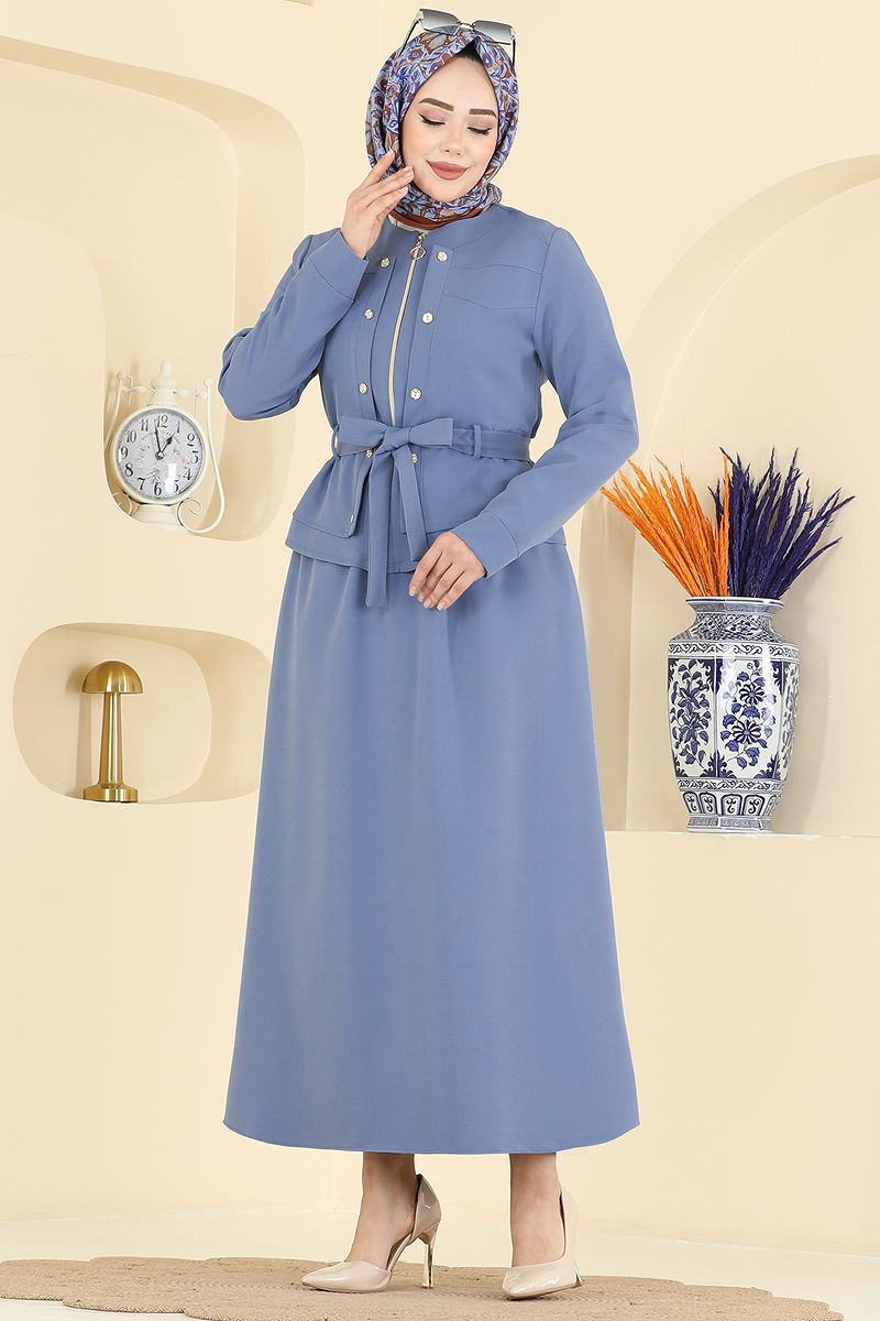 المنتج لديه ياقة دائرية. غير مبطنة. المنتج به سحاب في جزء من الأمام. الأزرار هي إكسسوارات. الحزام متضمن، ،يمكن استخدامها حسب الرغبة .خصر التنورة مرن قد يكون هناك اختلاف في الدرجة اللونية في المنتج بسبب التقاط الصور الفوتوغرافية.