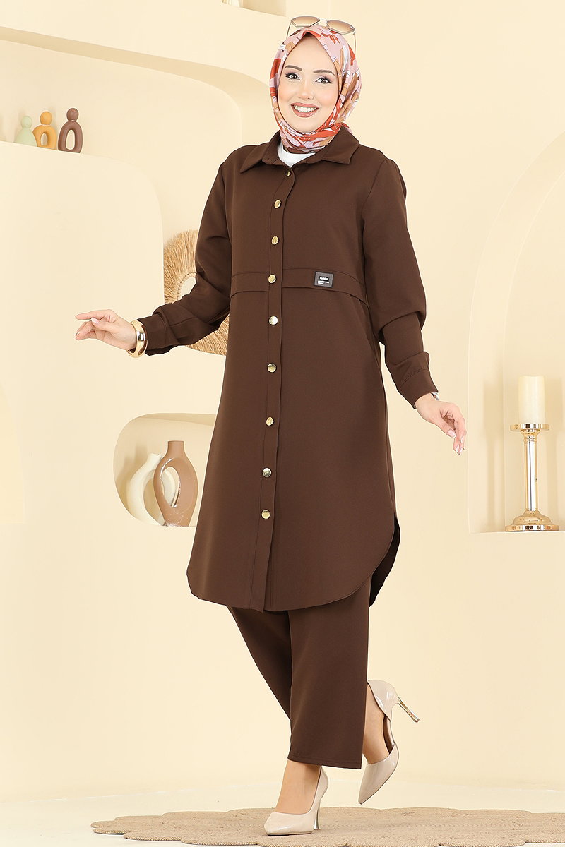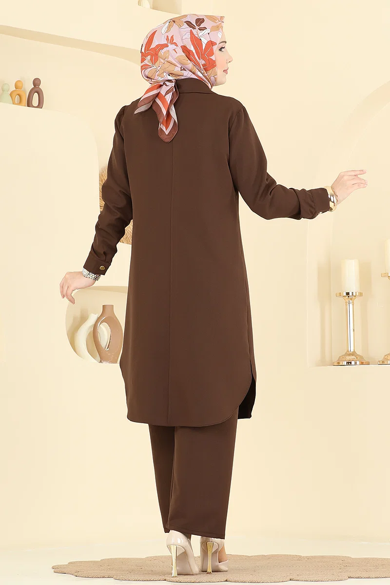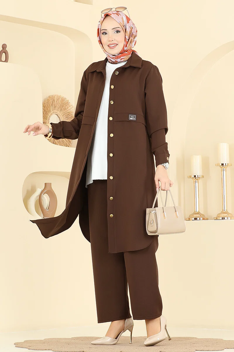 Product Feature : It is a new season hijab fashion product. The product has a Shirt collar. The product has From the front buttons. The tunic has a side slash.. Unlined. The waist of the trousers is elastic. There may be a tonal difference in the product due to concept photo shoots.