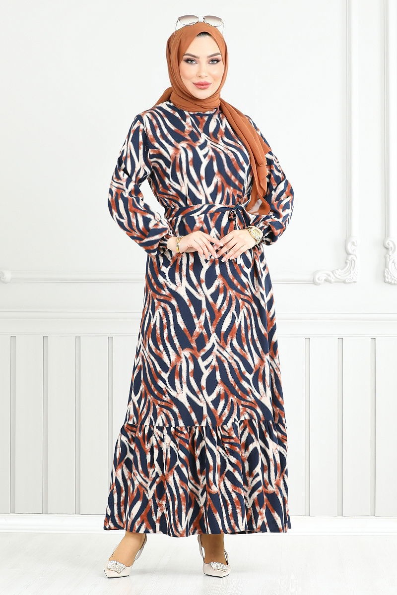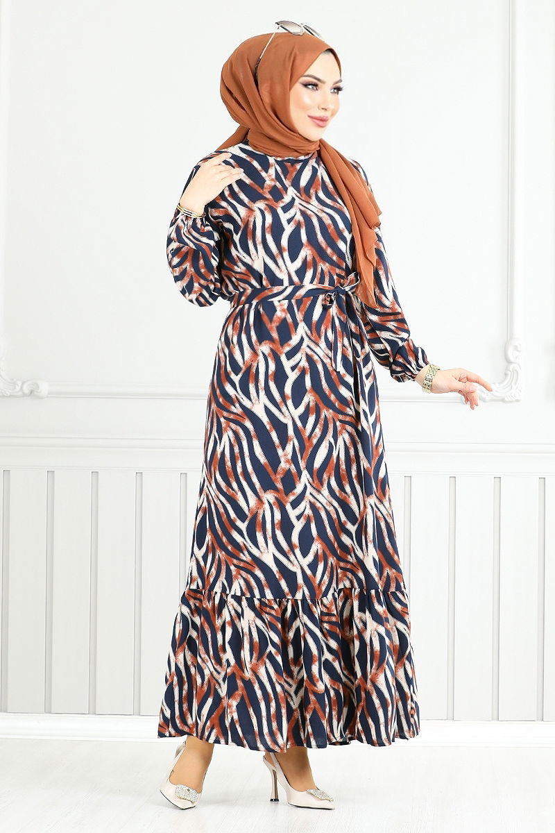 Dalga Desenli Viskon Elbise 825OZR1047-M Taba