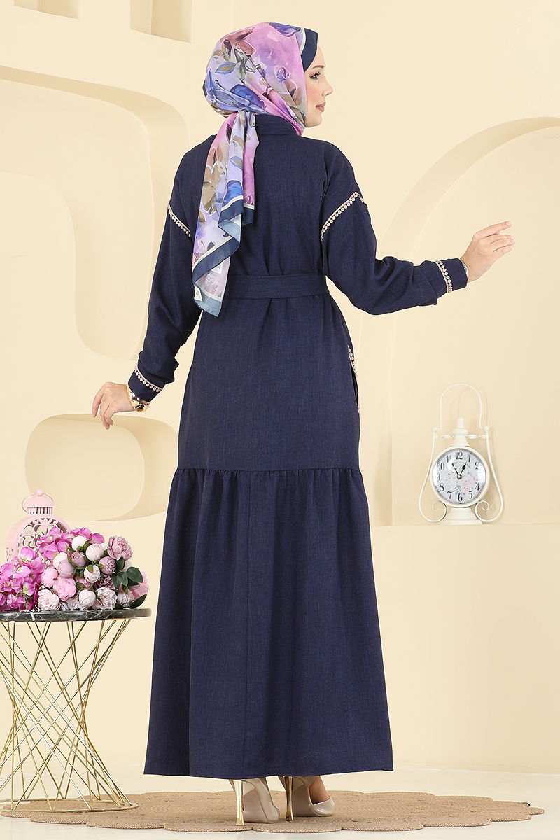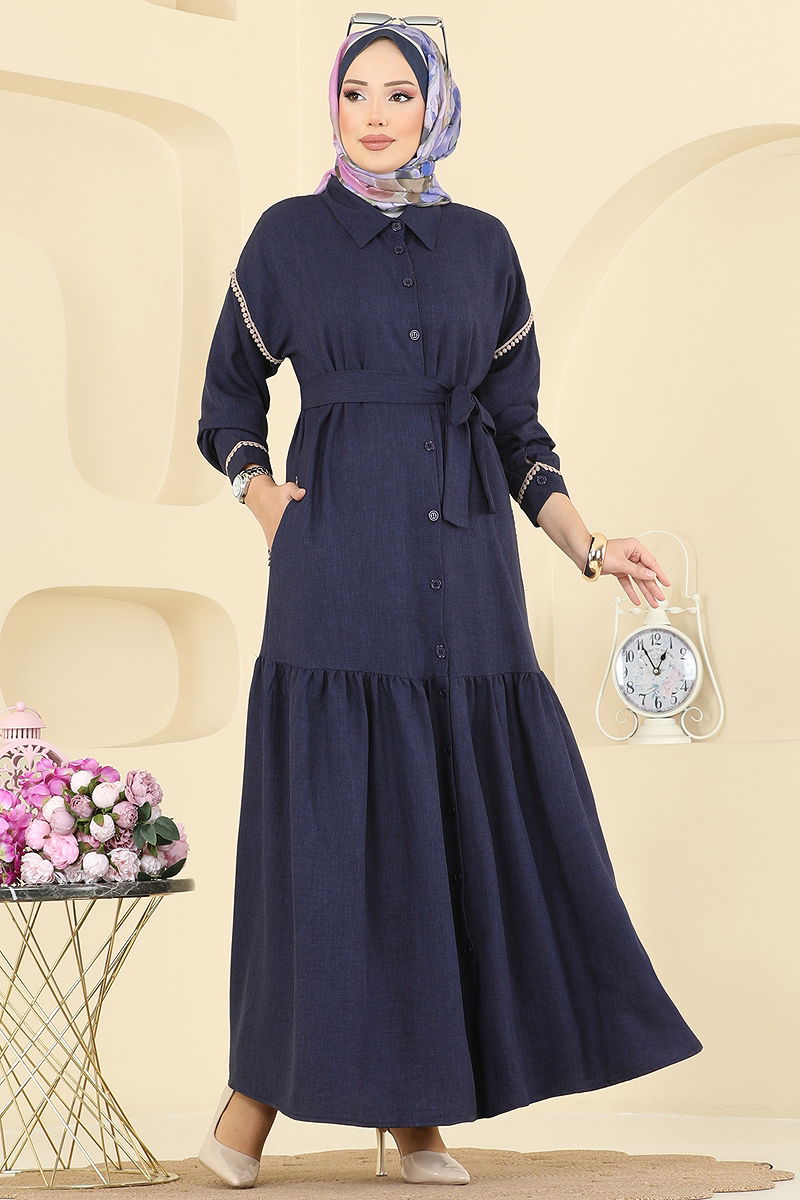 Şıklığı ve rahatlığı bir araya getiren Dantel Detaylı Kemerli Elbise, dört mevsim boyunca tercih edebileceğiniz bir tesettür ürünüdür. 30 derecede hassas yıkama ile temizlenebilen bu elbise, sofia keten kumaş kullanılarak üretilmiştir. Gömlek yaka ve önden düğmeli tasarımıyla modern bir görünüm sunarken, etek kısmındaki volan detayı feminen bir hava katmaktadır. Manşetlerdeki aktif düğmeler, cebi ve dilerseniz çıkarabileceğiniz kemer ile fonksiyonellik ve stil sahibi bir seçenektir.