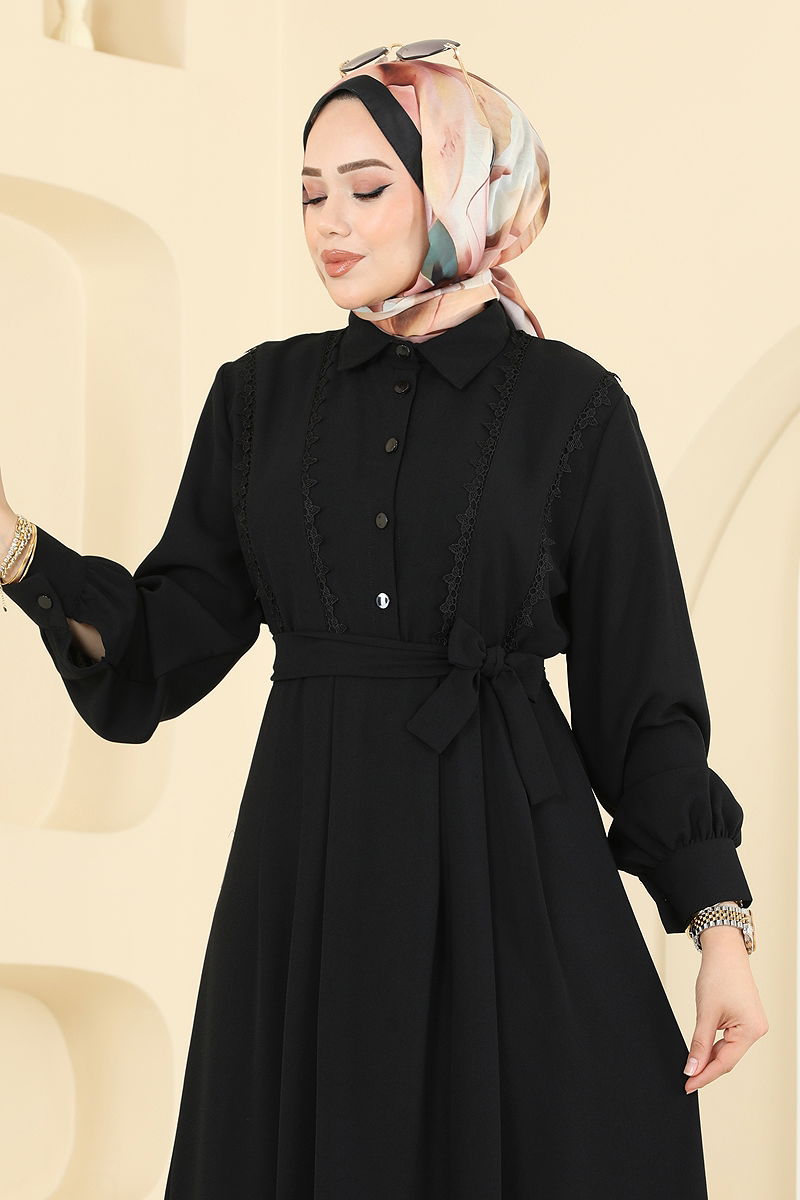 Dantel Detaylı Piliseli Elbise 308ASN888 Siyah