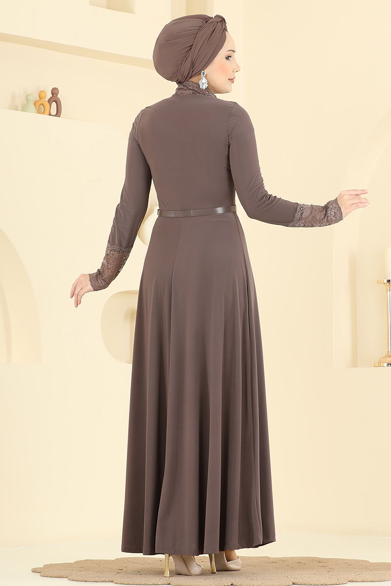 Dantel Detaylı Sandy Elbise 2460ANT466 Koyu Vizyon