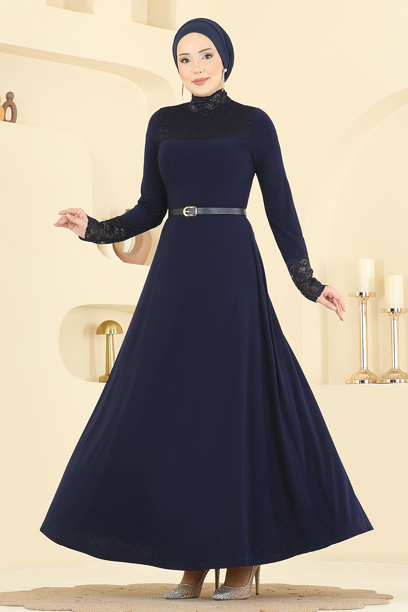 Dantel Detaylı Sandy Elbise, özel tasarım tesettür ürünüdür. Dört mevsim rahatlıkla kullanabileceğiniz bu elbise, hassas yıkama ile 30 derecede yıkanabilir. Sandy kumaşı sayesinde uzun ömürlü kullanım sunar. Hakim yakası ve dantel detayları ile şıklığına şıklık katar. Dikişli beli ile feminen bir siluet çizerken, astarsız yapısıyla hafif ve konforlu bir kullanım sağlar. Modelin üzerindeki 38 beden ölçüleriyle uyumlu dantel detayları, elbisenin zarif duruşunu tamamlar.