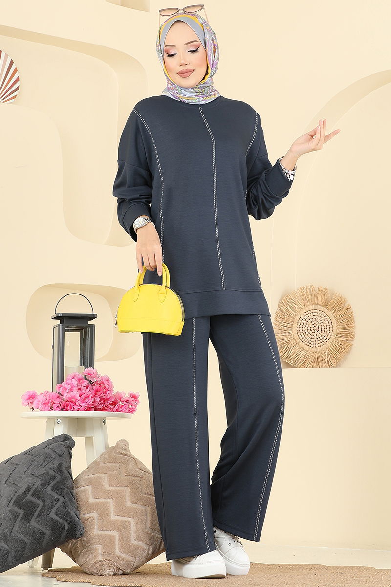Dekoratif Dikiş Detaylı Takım Antrasit