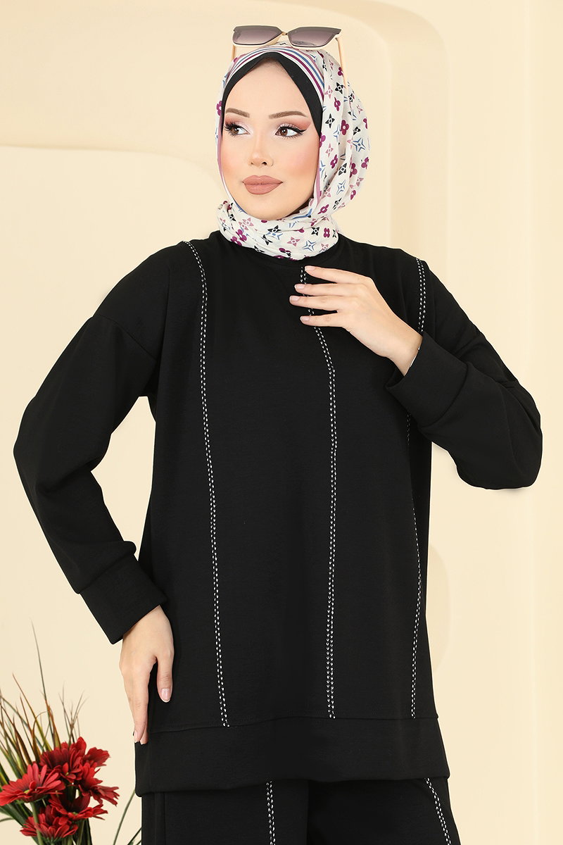 Dekoratif Dikiş Detaylı Takım Siyah