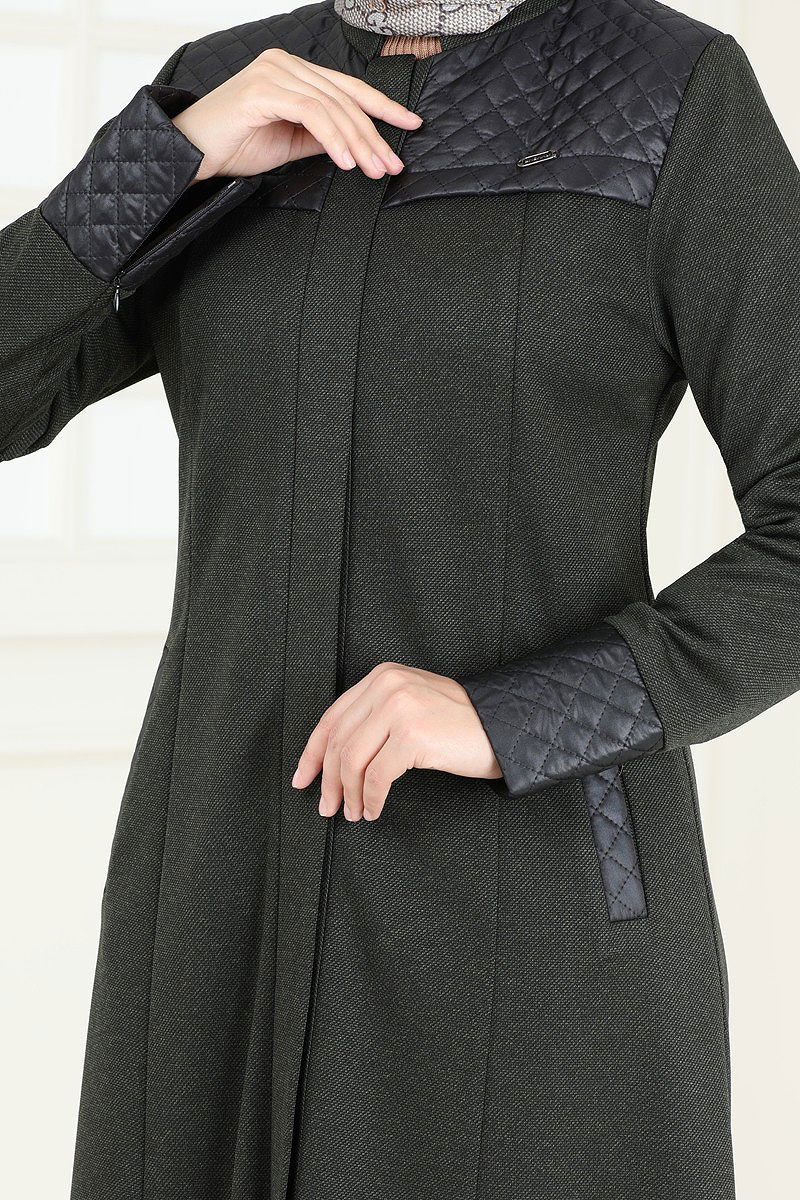 Deri Detaylı Pardesü Ferace 2250EDM718 Haki