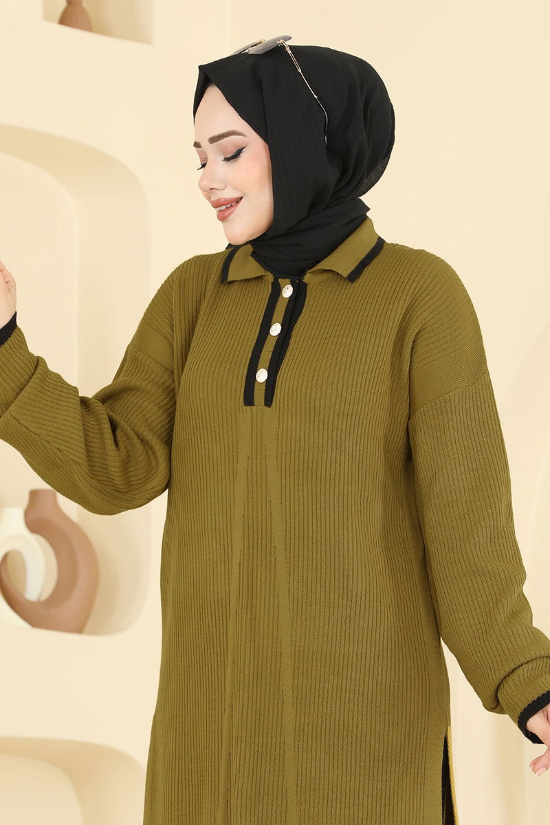 Sonbahar ve kış aylarının vazgeçilmezi Derin Yırtmaçlı Triko Takım, sıcak tutan triko kumaşı ve şık tasarımıyla dikkat çekiyor. Hassas yapısı sayesinde 30 derecede yıkanabilen bu tesettür ürünü, hem konforlu hem de kullanışlı. Gömlek yaka detayı ve yandan yırtmaçlı tunik tasarımı ile modern bir görünüm sunarken, lastikli bel pantolonu ile gün boyu rahatlık sağlar. KOMBİN modeli, her ortamda şıklığınızı korumanız için ideal.