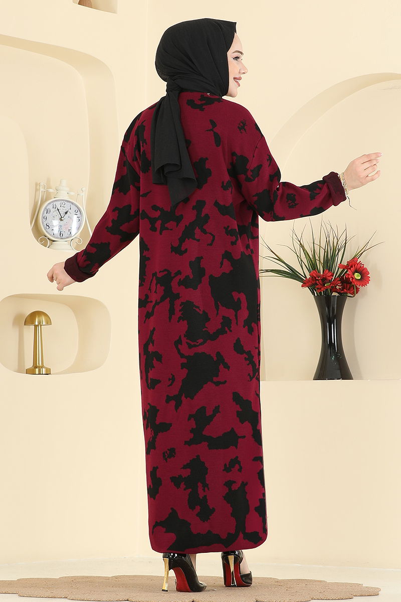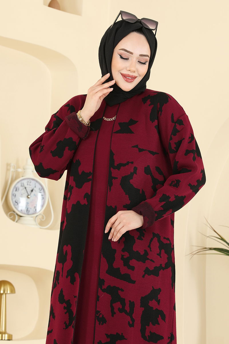 Desen Detaylı Elbiseli Takım 2768AYD574 Bordo