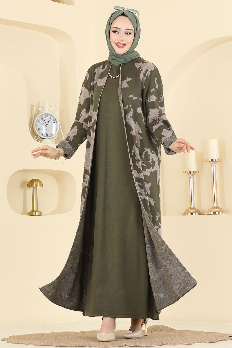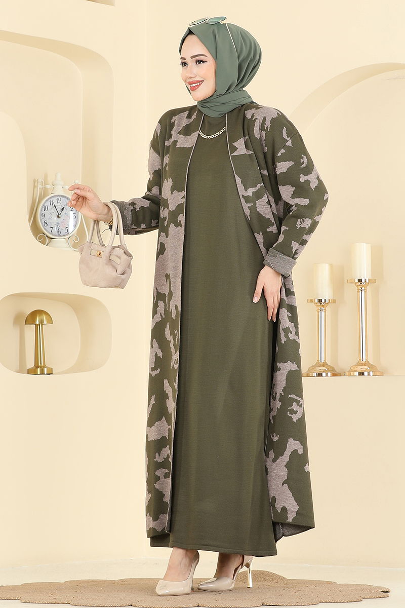 Desen Detaylı Elbiseli Takım 2768AYD574 Haki