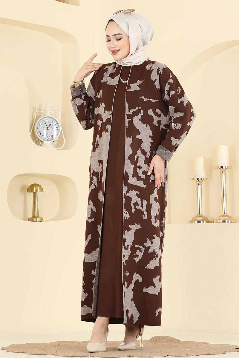 Desen Detaylı Elbiseli Takım 2768AYD574 Kahve