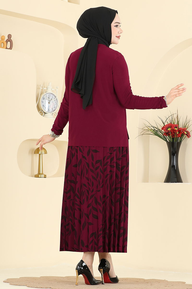 Desenli İkili Etek Takım 5580ZNN863 Bordo