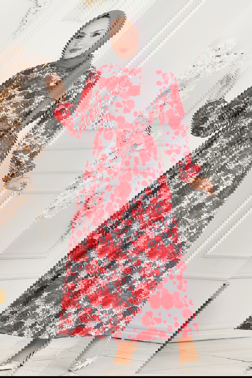 Floral Pattern Terikoton Dress is a modest fashion product. It can be used in all seasons. It should be washed at 30 degrees without squeezing. It is made of first-class Terikoton fabric. The product has a Bicycle collar and is unlined. (The product on the model is size M.) Height: 160 cm, Chest: 82 cm, Waist: 68 cm, Hips: 96 cm, Weight: 53 kg. The two ends of the belt are sewn to prevent fluttering, and the middle part is left empty (seamless). The belt is included with the product and can be optionally used. Its waist and cuffs are elastic.