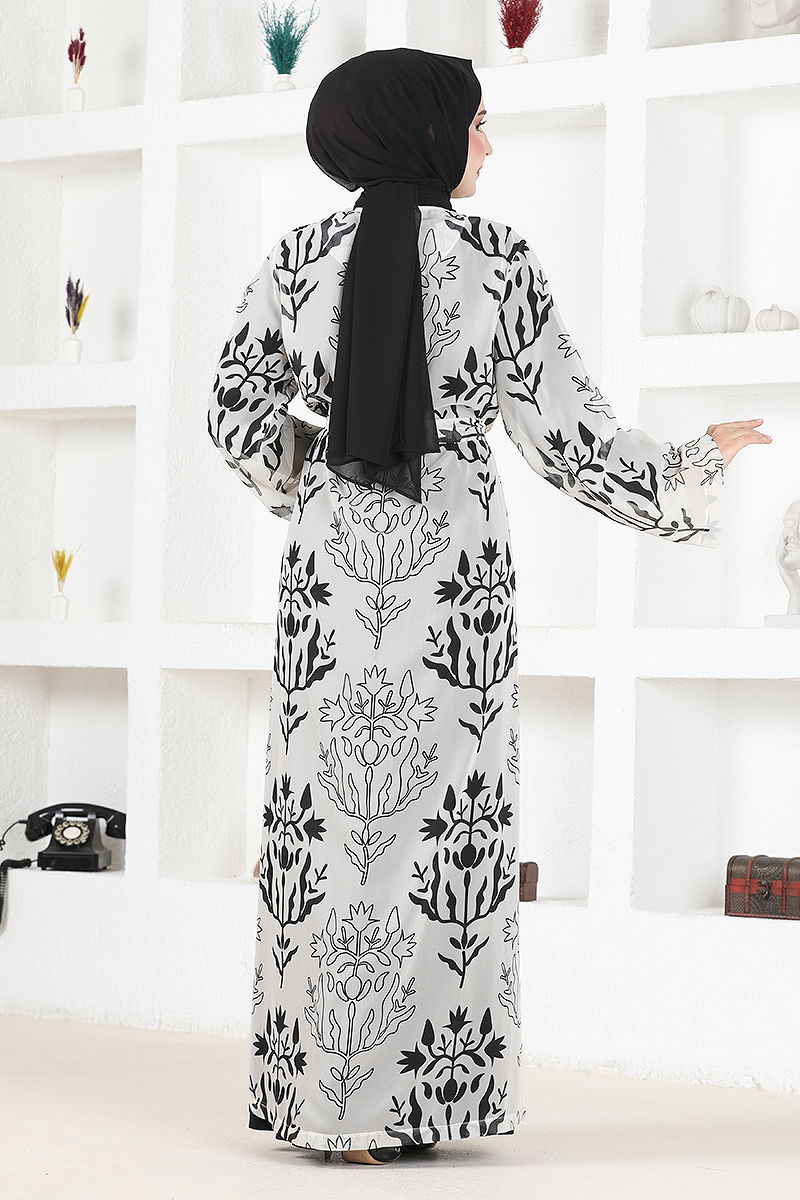 Desenli Tesettür Takım BYL72-M Ekru