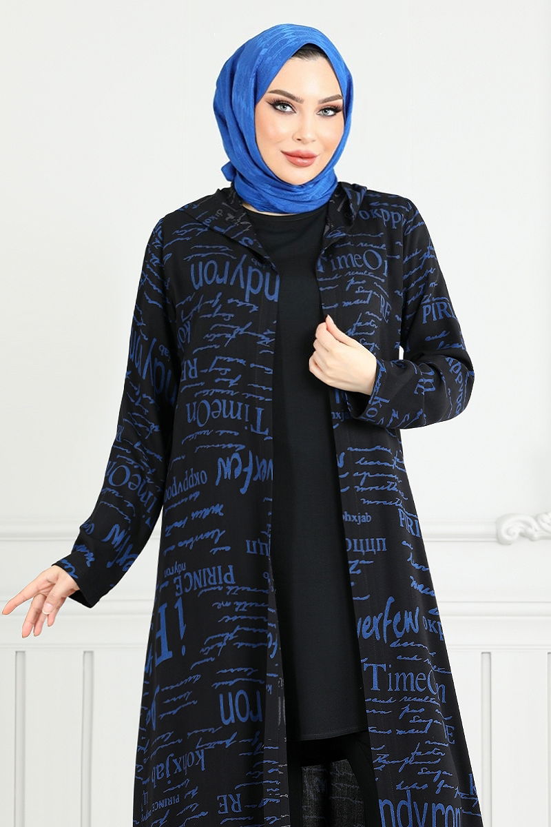 Desenli Üçlü Tesettür Kombin 4012BGS895-M İndigo&Siyah
