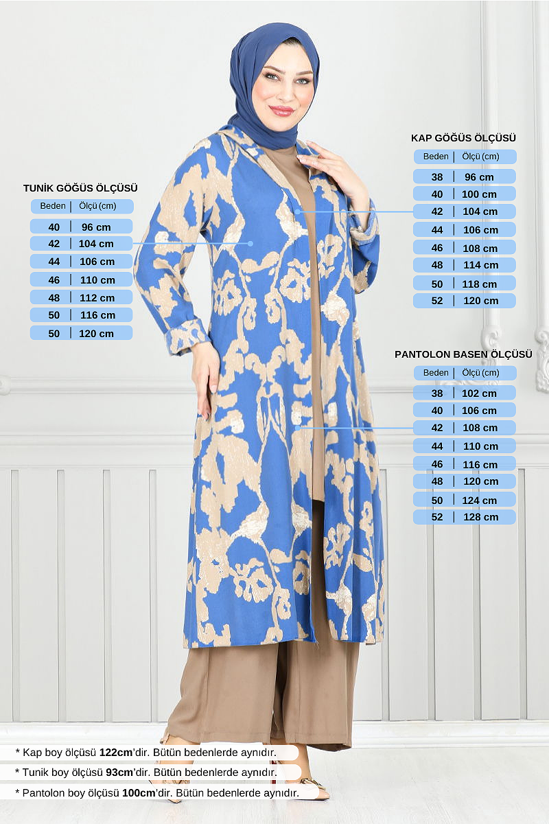 Desenli Üçlü Viskon Takım 0332BGS895 İndigo&Vizyon