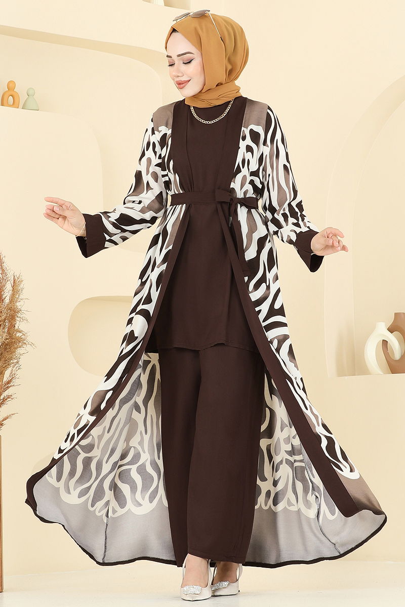 Desenli Üçlü Viskon Takım 0345BG354 Desen 1 Kahve