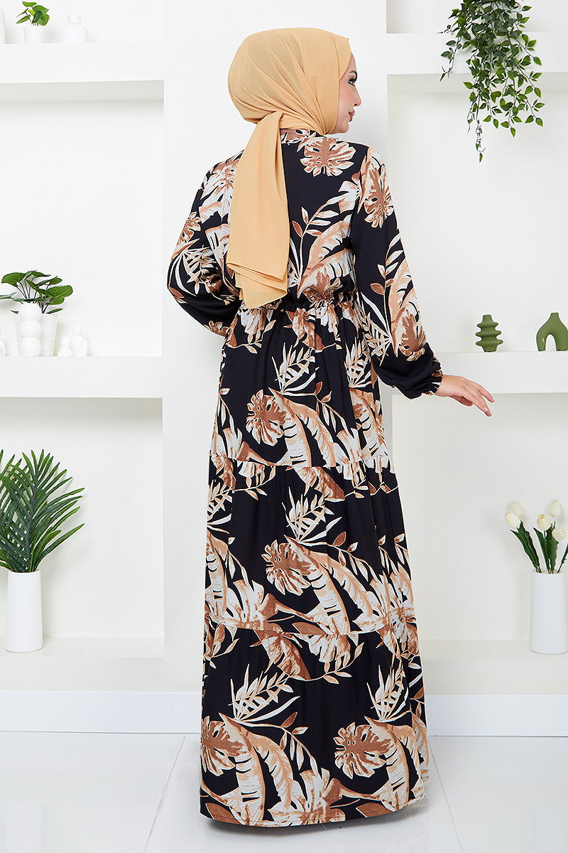 Desenli Viskon Elbise 2351BGS895-M Siyah