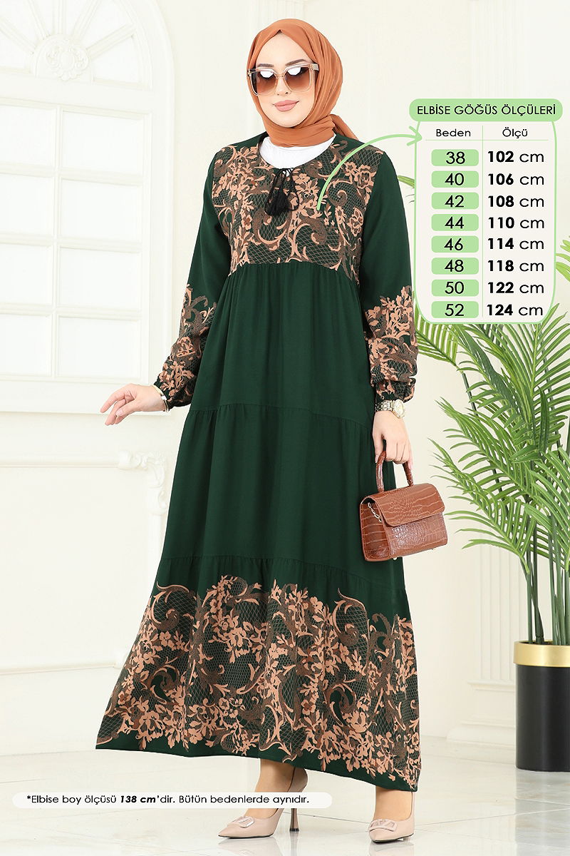 Desenli Viskon Elbise 4082ZNN863 Zümrüt