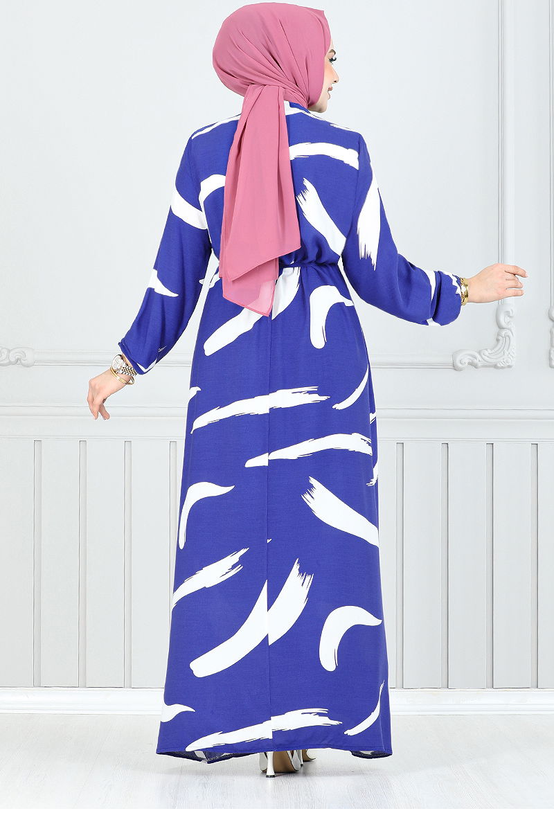 Desenli Viskon Elbise Saks