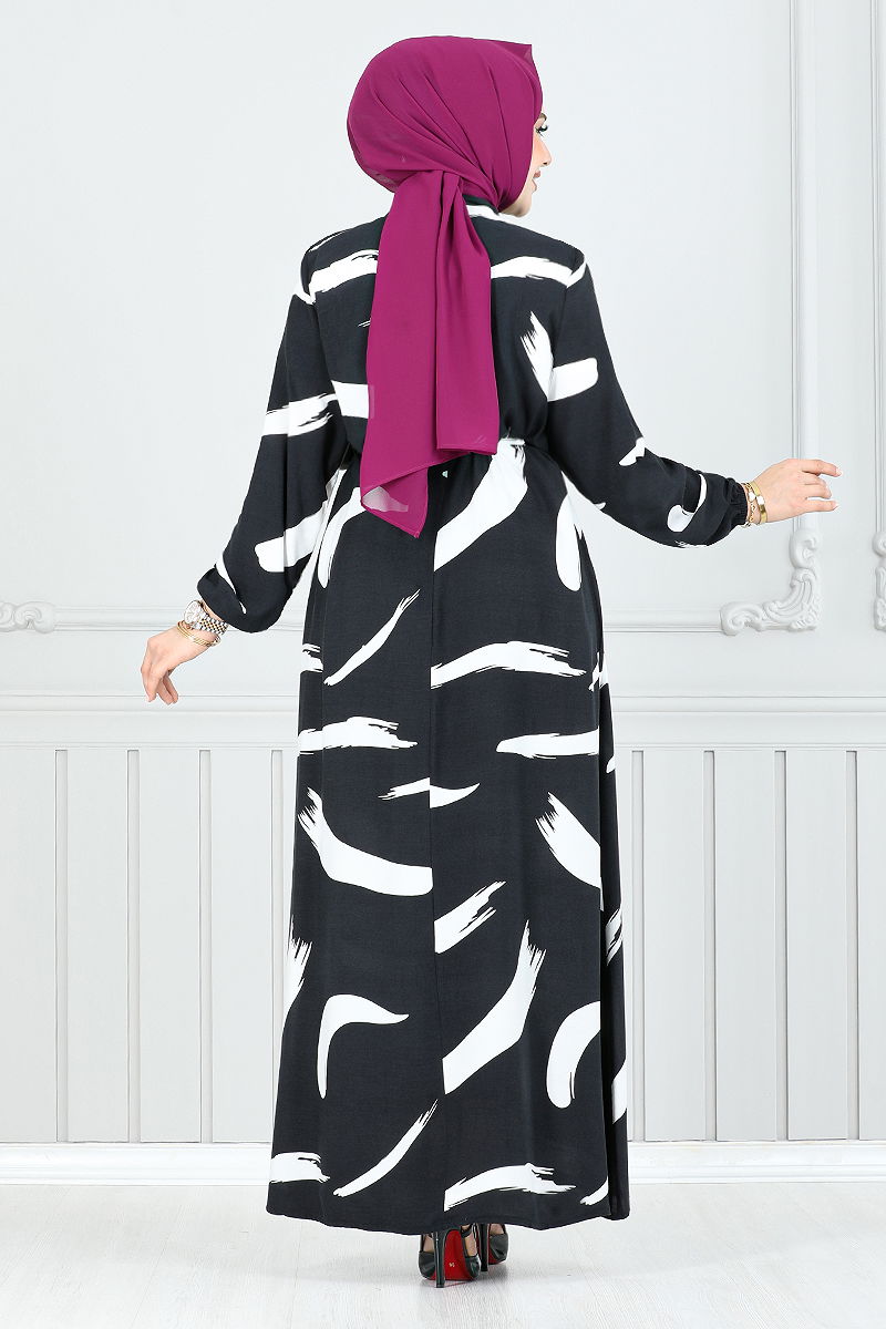 Desenli Viskon Elbise 800OZR1047-M Siyah