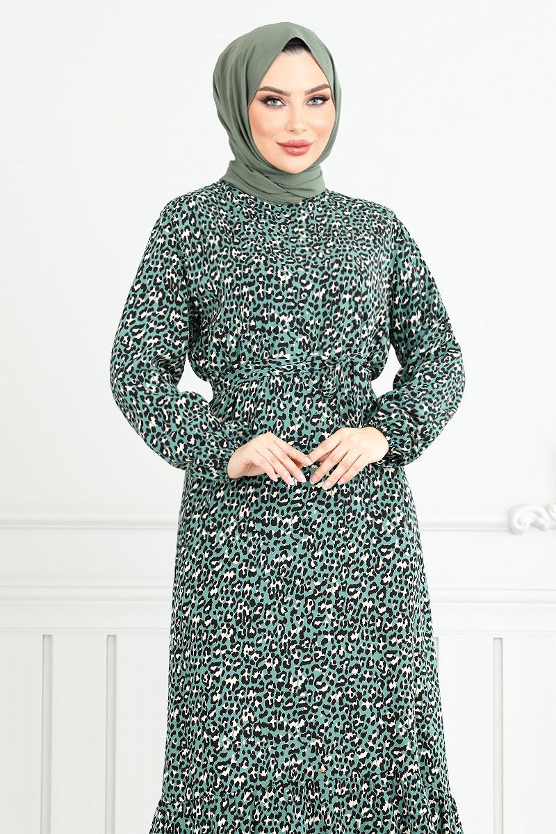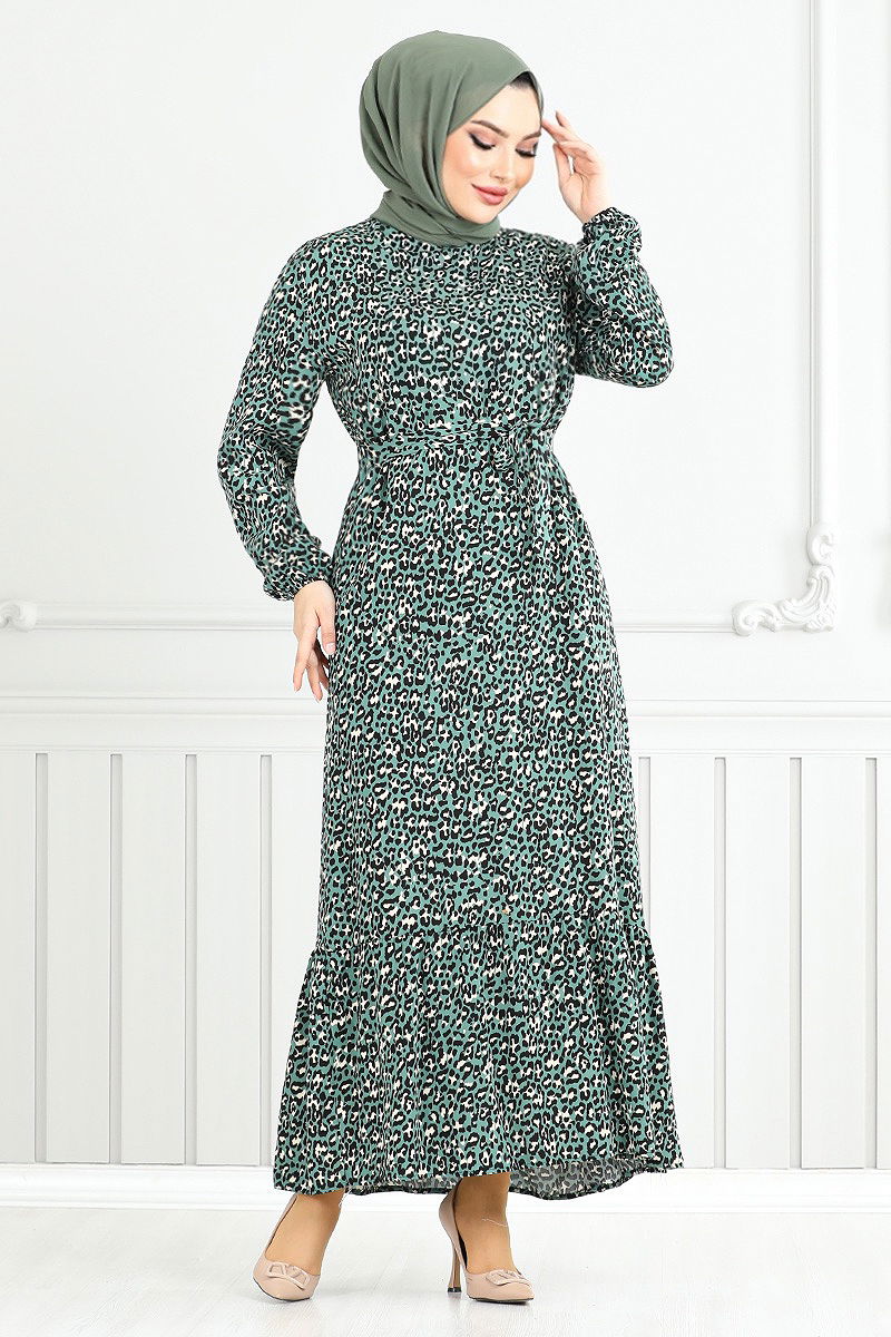 Desenli Viskon Elbise Mint