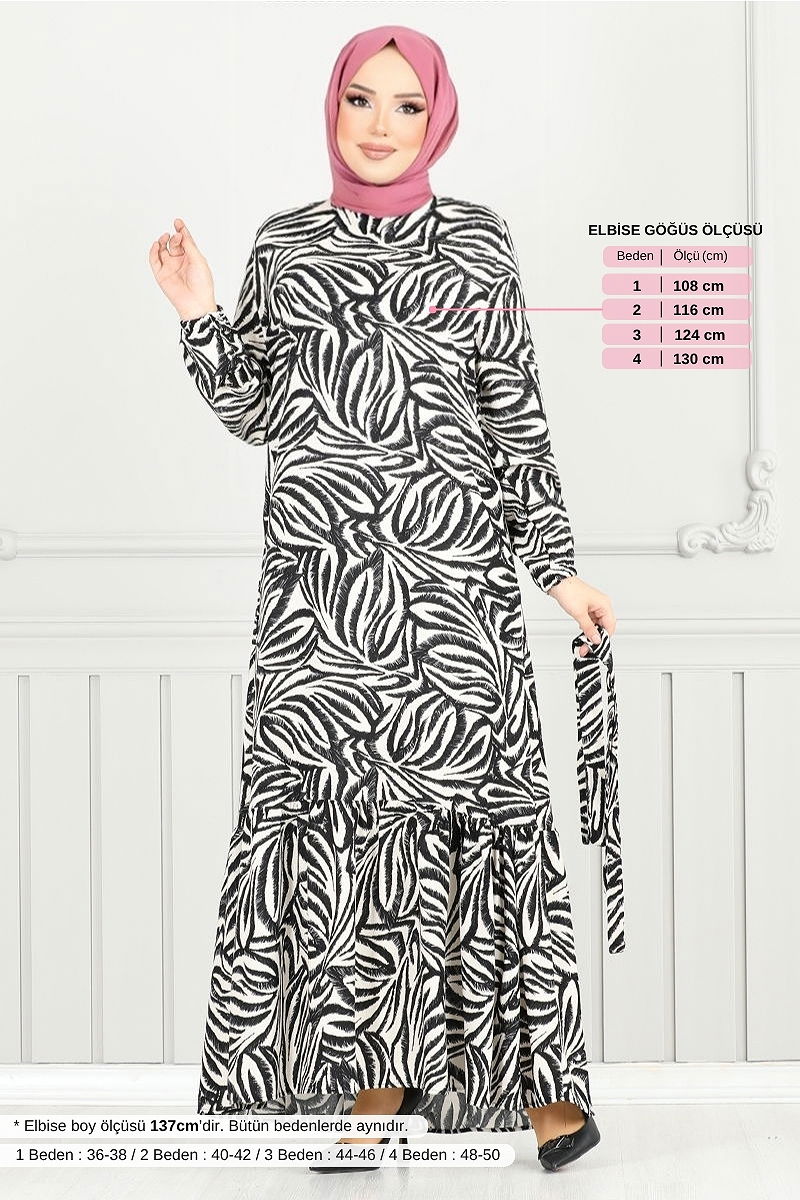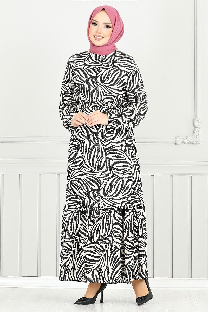 Desenli Viskon Elbise 836OZR1047-M Siyah